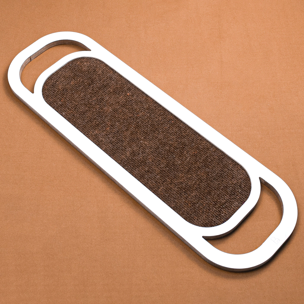 A base do nosso arranhador é feita de MDF laminado reflorestado, o que garante rigidez, durabilidade e um acabamento refinado para a sua casa. O carpete foi pensado para instigar o arranhar sem danificar as unhas dos felinos, além de não espalhar sujeira pela casa como os arranhadores convencionais de papelão e o sisal.