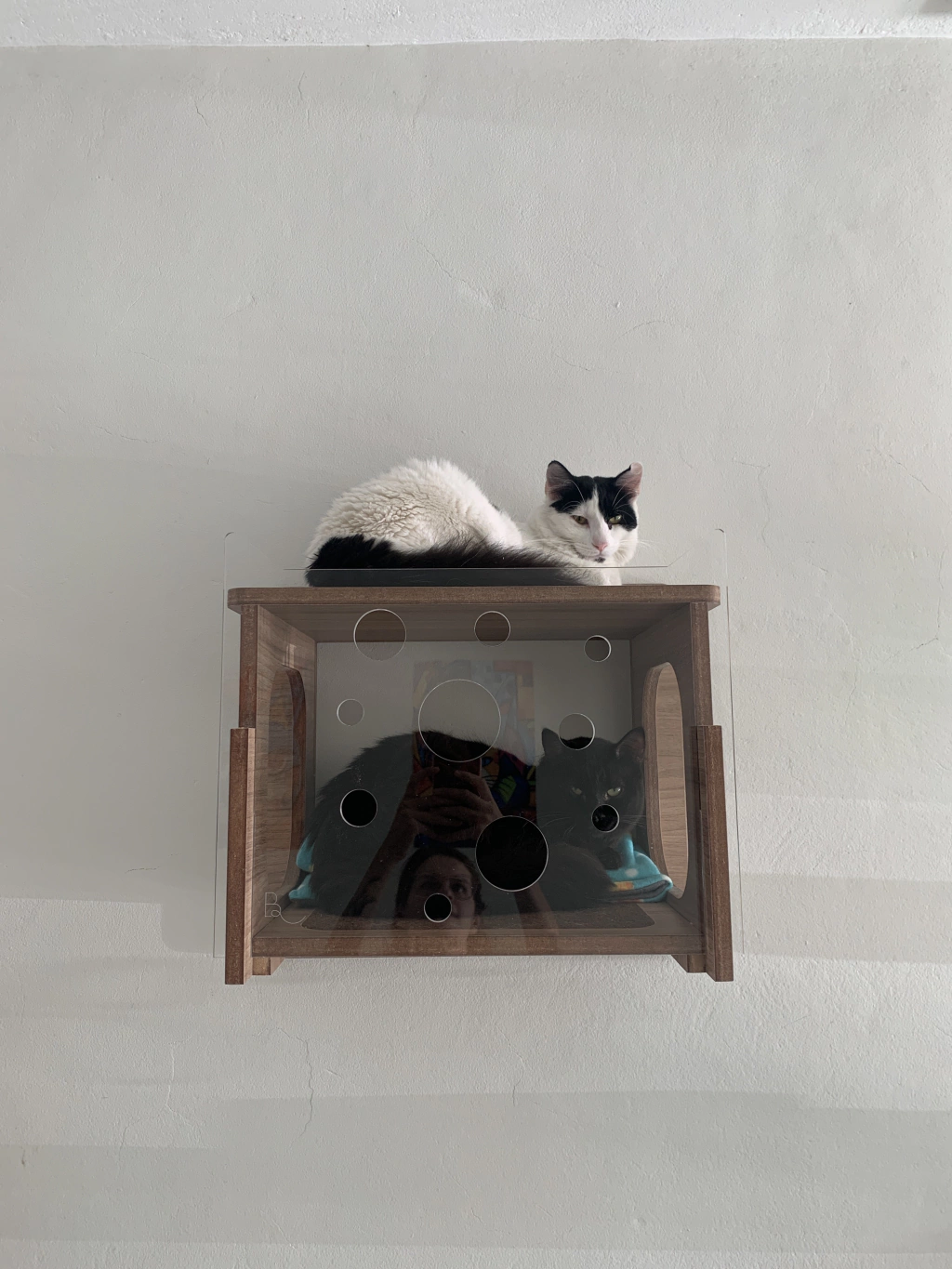 A toca, baseada na nossa toca Hórus, vem para os gatos que gostam de um descanço nas alturas. Pode ser utilizada em casas multicats também pois tem carpete dentro e na sua parte superior (com refil!); O acrílico deixa a toca com um ar mais leve e também, você pode observar de longe o seu gato! E claro, ele também tem uma visão incrível de cima dela <3